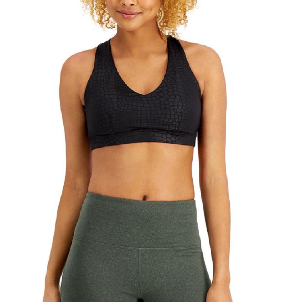 Um look superestiloso com costas de tiras e estampa tonal chique | este sutiã esportivo ID Ideology possui almofadas removíveis que aumentam o suporte de baixo impacto