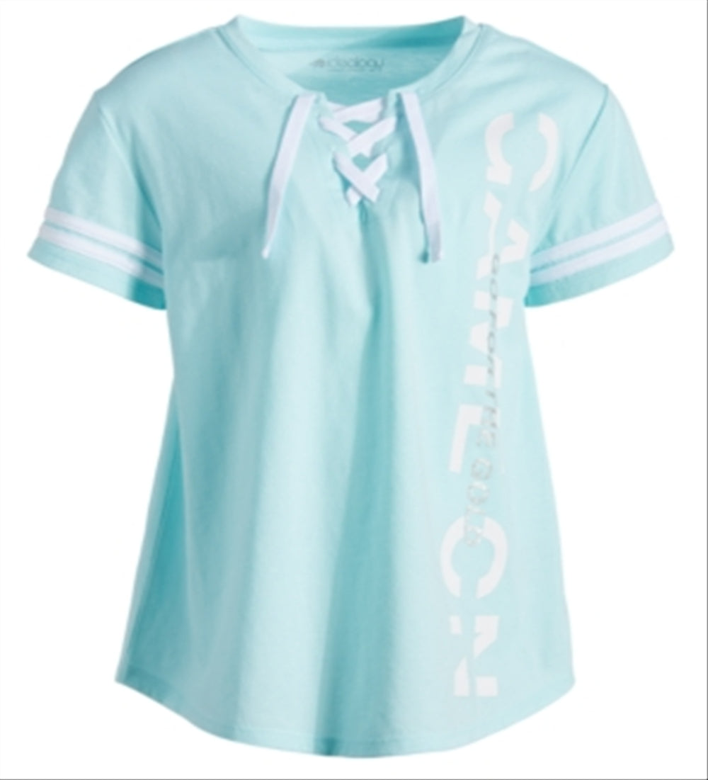Mangas listradas e decote com cadarço transmitem uma sensação esportiva e muito divertida com a camiseta com estampa gráfica da Ideology. Gola redonda com detalhe de cadarço. Estampa gráfica na frente. Detalhes de listras nas mangas curtas. Algodão/poliéster.