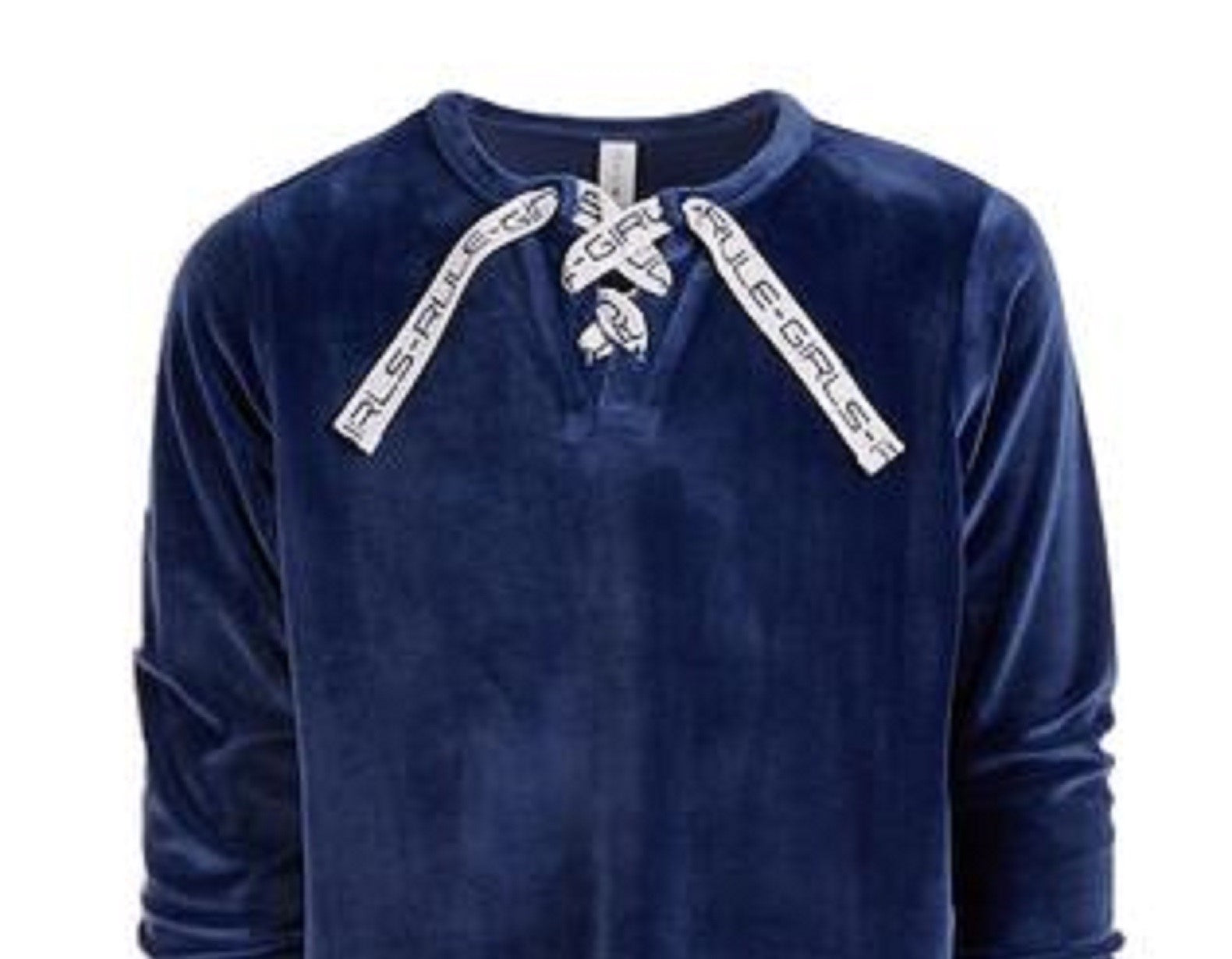 Ideologia Big Girls Moletom de veludo com cadarço azul escuro tamanho pequeno