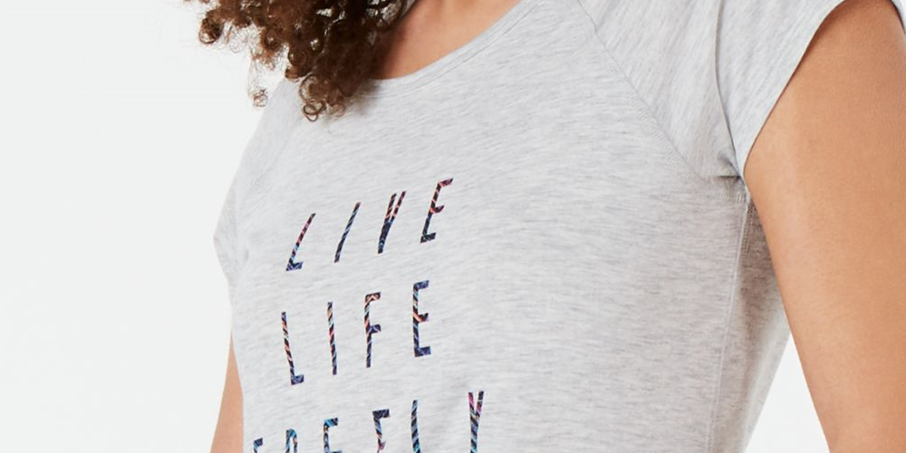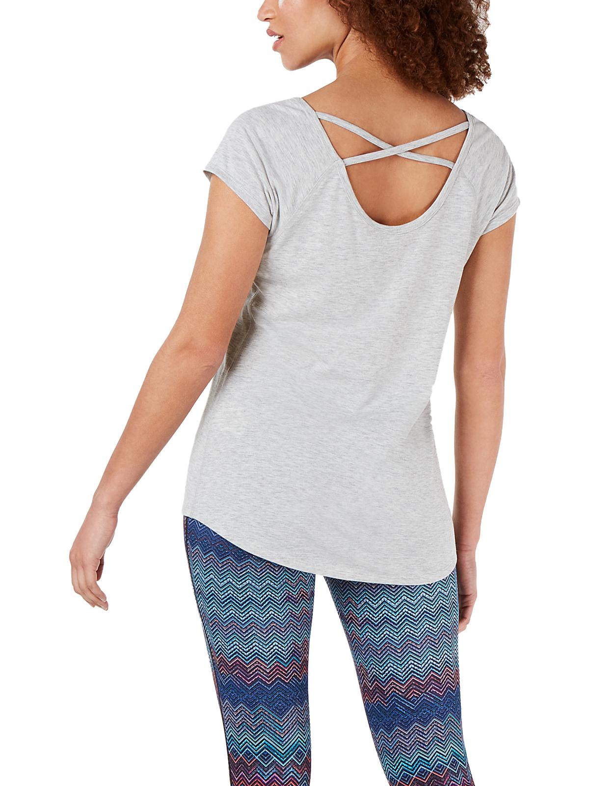 Camiseta feminina estampada com decote em joia e manga curta, estilo casual, cinza, tamanho pequeno