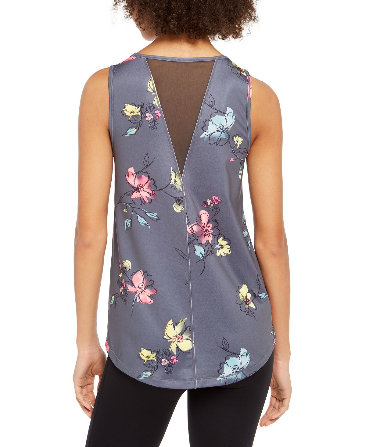 Uma estampa floral de inspiração vintage confere um visual encantador a esta regata Ideology. A malha arejada nas costas proporciona conforto e respirabilidade. | Ajustada; aprox. 26-1/2 de comprimento; inserção de malha nas costas | Gola redonda | | Corpo | malha; poliéster/elastano
