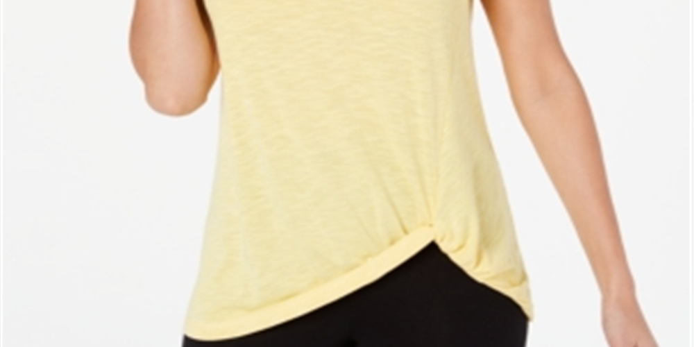 Camiseta feminina Ideology com nó frontal, amarela, tamanho XL