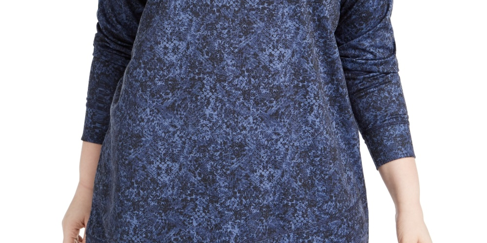 Blusa feminina Ideology Plus com estampa cruzada e bainha azul, tamanho 2X