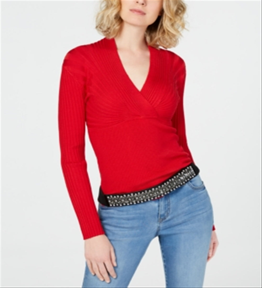 Blusa casual feminina INC texturizada de manga comprida e decote em V