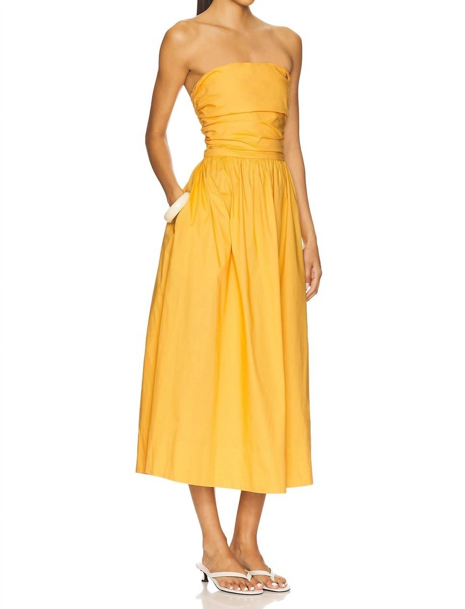 The perfect length dress does exist. Introducing the Florence Strappy Back Dress by Illesteva, a striking piece in vibrant Papaya perfect for summer occasions. This strapless, A-line midi dress offers a minimalist silhouette with a strappy back and practical side zipper closure. Crafted from a comfortable 97% cotton and 3% spandex blend, it promises ease of movement while remaining stylish. Care for this solid-patterned dress is straightforward: simply machine wash.