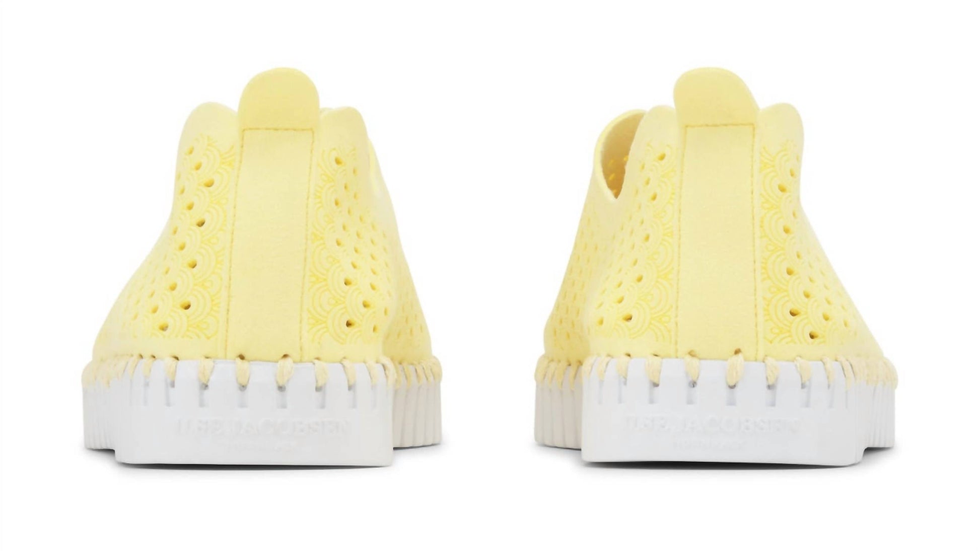 Experience unparalleled comfort and sustainability with the Men's Tulip 139 Shoes by Ilse Jacobsen, crafted in a vibrant Lemon Drop hue. These Danish-designed shoes showcase a stylish round toe with a decorative laser cut pattern, perfect for summer streetwear or camping occasions. Made from soft rubber and recycled microfiber, they feature a recycled rubber outsole and a pig suede lining for enhanced comfort. Designed with a flat heel style, these water shoes offer breathable flexibility for any adventure.