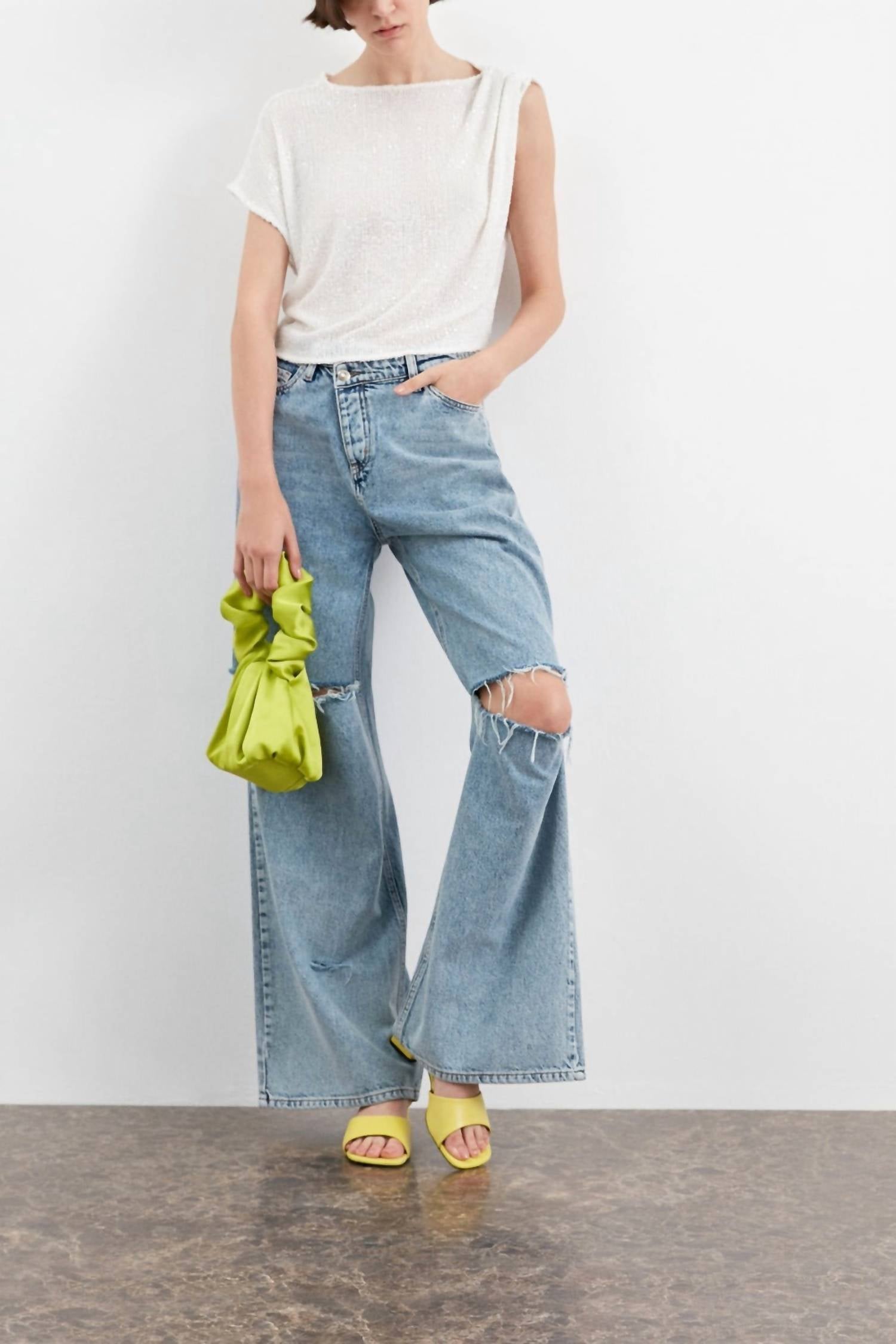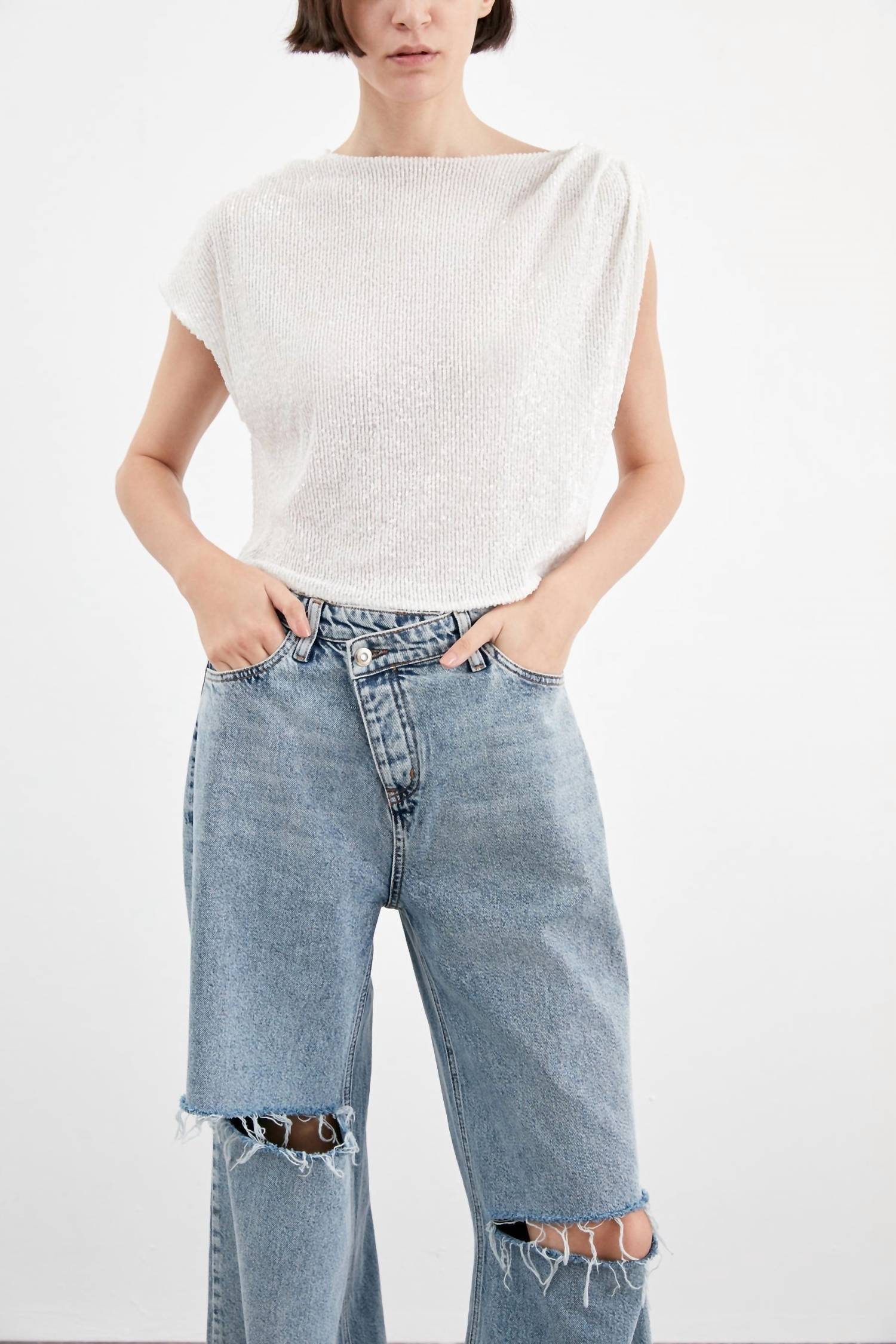 Minimalist spring essential with cap sleeves and a textured pattern. Crafted from soft sequins in a striking vanilla shade. Features an elegant boatneck and shoulder draping detail. With a pull-on closure, offers a true-to-size fit, perfect for vacation occasions. Care instructions recommend hand washing to maintain its pristine allure.