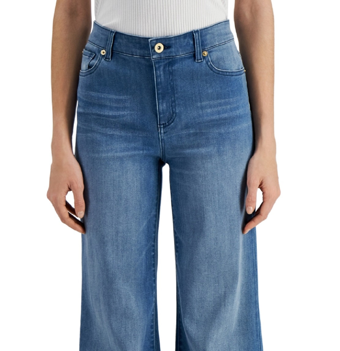 Calça jeans feminina de cintura alta e perna larga, azul, tamanho 12, da Inc International Concepts