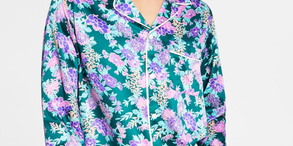 A INC International Concepts® torna o estilo lounge confortável fácil de usar com o brilho suave e a sensação suave do cetim combinados com estampas vibrantes neste lindo pijama. | Caimento regular | Gola camp | Mangas curtas | Bolso no lado esquerdo do peito | Estampa completa |