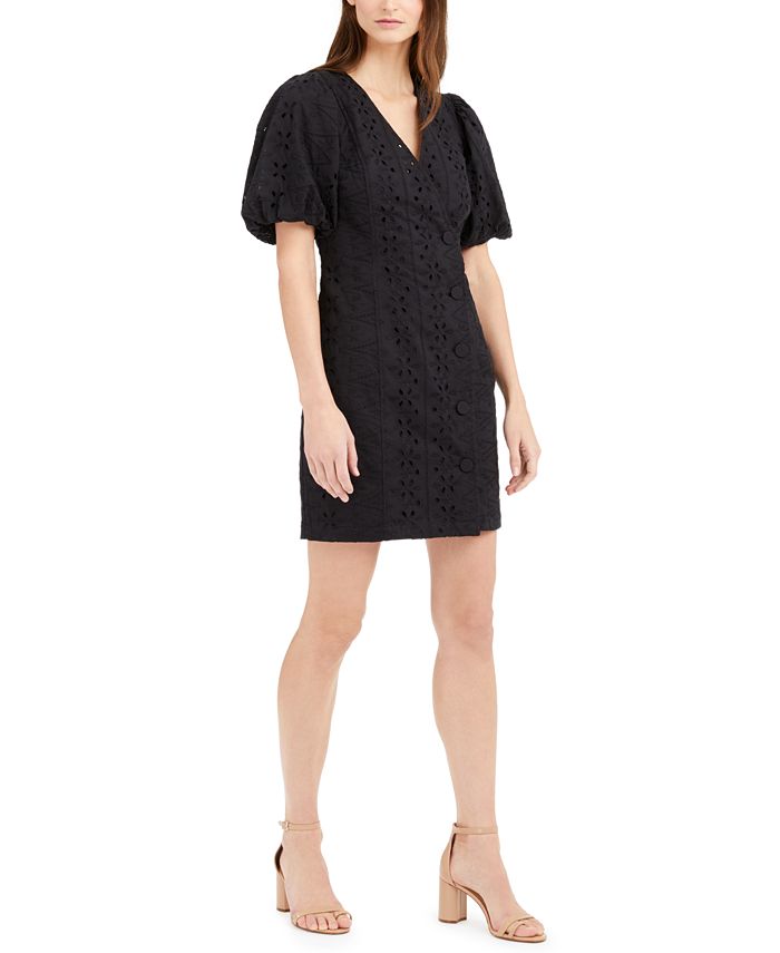 Vestido masculino com manga bufante e ilhós, preto, tamanho 8, da INC International Concepts