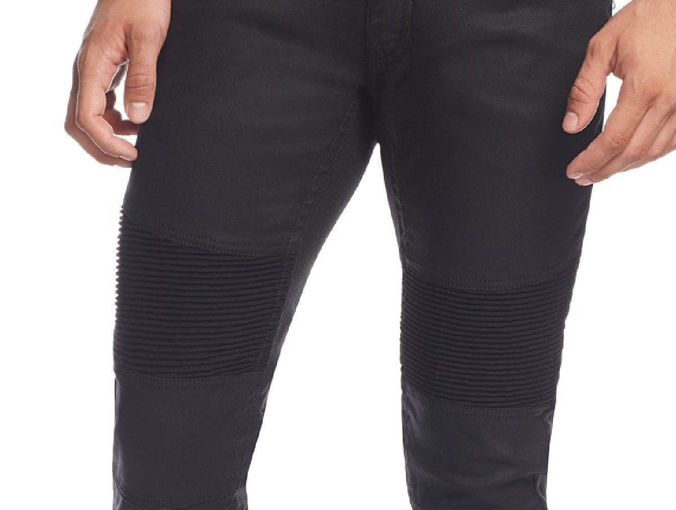 Calça jeans masculina skinny fit moto da INC International Concepts com zíper, preta, tamanho 36x32