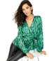 Blusa envolvente feminina com estampa animal da INC International Concepts, verde, tamanho X-S