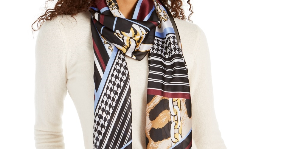 Cachecol estampado feminino com status animal da INC International Concepts, preto, tamanho regular