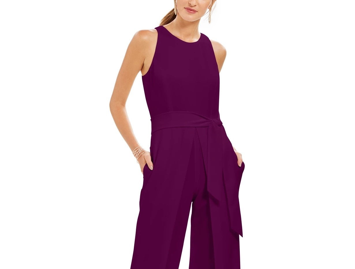 Macacão feminino INC International Concepts com cinto e pernas largas, tamanho 2, vinho