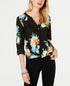 Blusa floral Cloud Burst feminina da INC International Concepts, preta, tamanho X-S