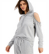 Moletom com capuz feminino INC International Concepts com franjas e ombros descobertos, cinza, tamanho médio
