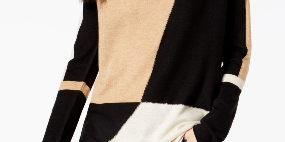 Suéter feminino colorblocked INC International Concepts marrom tamanho XX-grande
