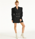 O estilo smoking segue uma nova direção feminina com este vestido sofisticado da Culpos X INC International Concepts | um visual glam com ombros bufantes e botões brilhantes |
