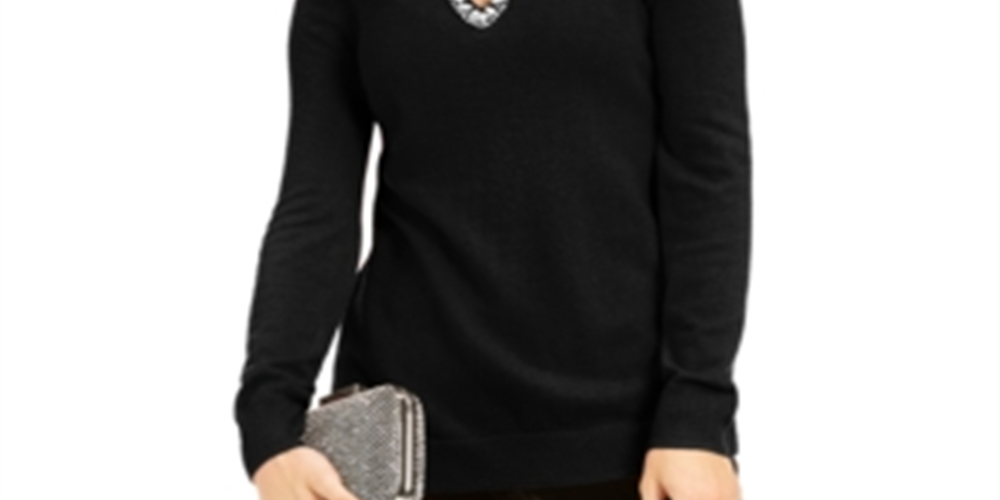 Suéter feminino com decote em V e botões da INC International Concepts, tamanho pequeno, preto