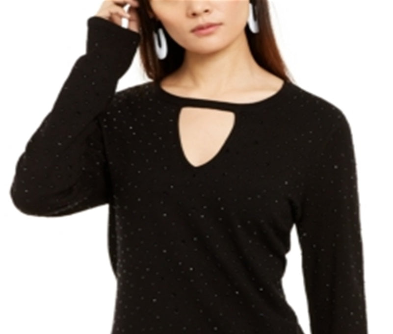 Enfeites com tachas dão um toque de ousadia a este suéter chique com abertura de fechadura da INC International Concepts®. | Gola redonda com abertura de fechadura | Tachas na frente e nas mangas | | Rayon/nylon | Lavável à máquina | Importado