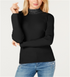INC International Concepts Feminino Gola Alta em Malha Canelada Embelezada Preto Tamanho P