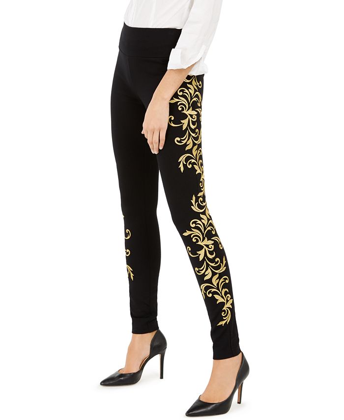 Bordados metálicos luxuosos marcam presença nestas calças skinny petite da INC International Concepts. | Costura interna aprox.; 27 | Gancho; aprox. 9; caimento regular nos quadris e coxas; perna skinny | Projetada para se ajustar e valorizar pessoas de 1,62 m ou menos | Estilo pull-on | Bordado metálico nas laterais
