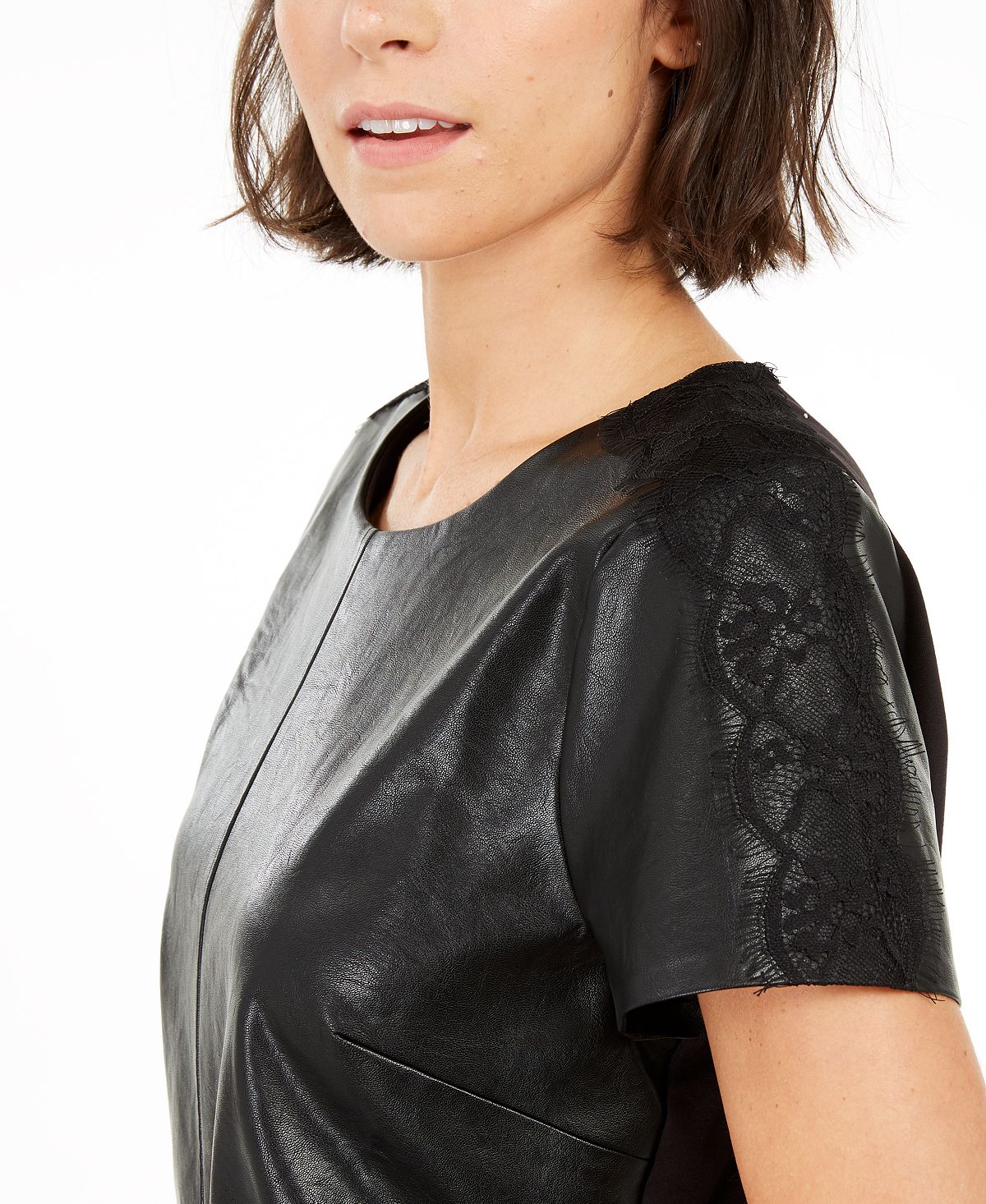 Camiseta feminina de couro sintético INC International Concepts, preta, tamanho pequeno