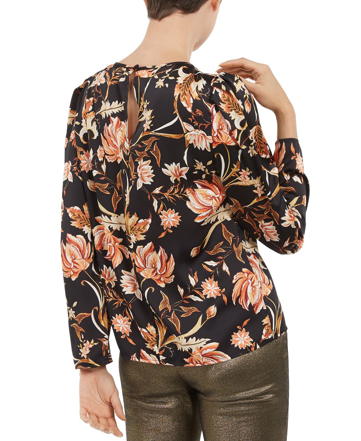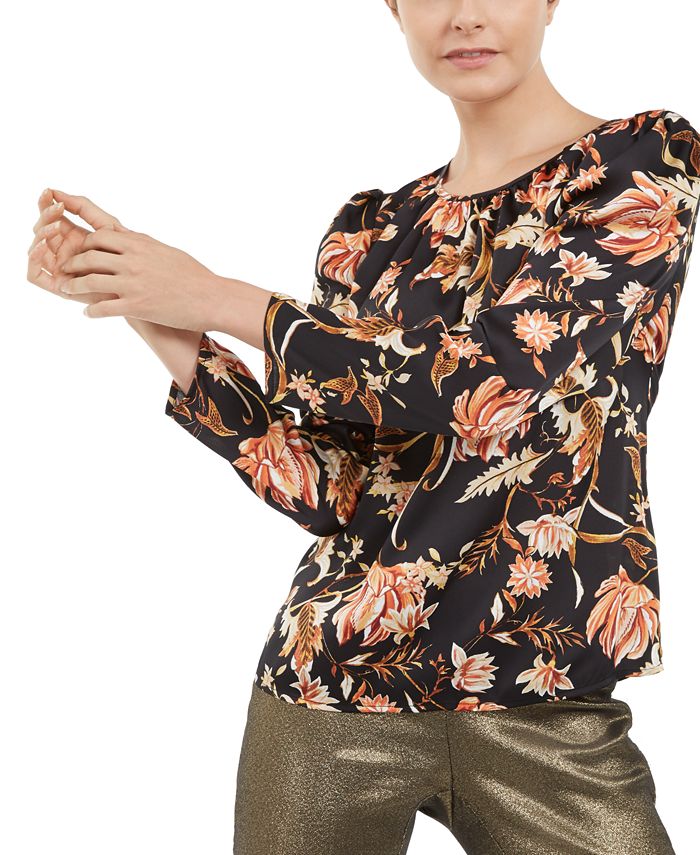Mangas bufantes volumosas conferem um visual encantador a este top de inspiração floral da INC International Concepts®. | Gola redonda; fecho de botão nas costas | Mangas bufantes | Poliéster | Lavável à máquina