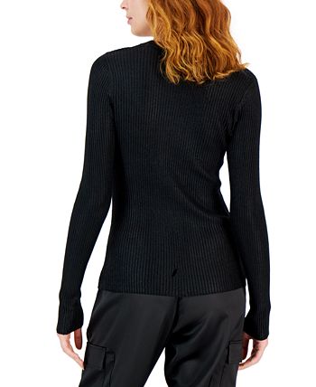 Suéter feminino com decote redondo e estampa de folha da INC International Concepts, preto, tamanho pequeno