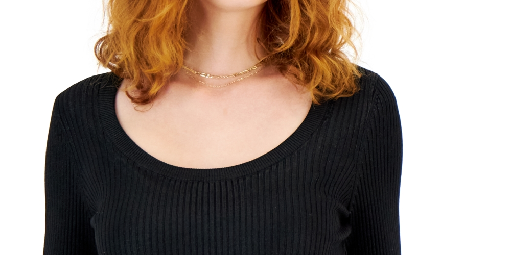 Suéter feminino com decote redondo e folha metálica da INC International Concepts, preto, tamanho XX-G