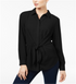 Blusa feminina com botões e mangas compridas e nó frontal da INC International Concepts, preta, tamanho médio