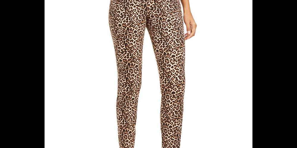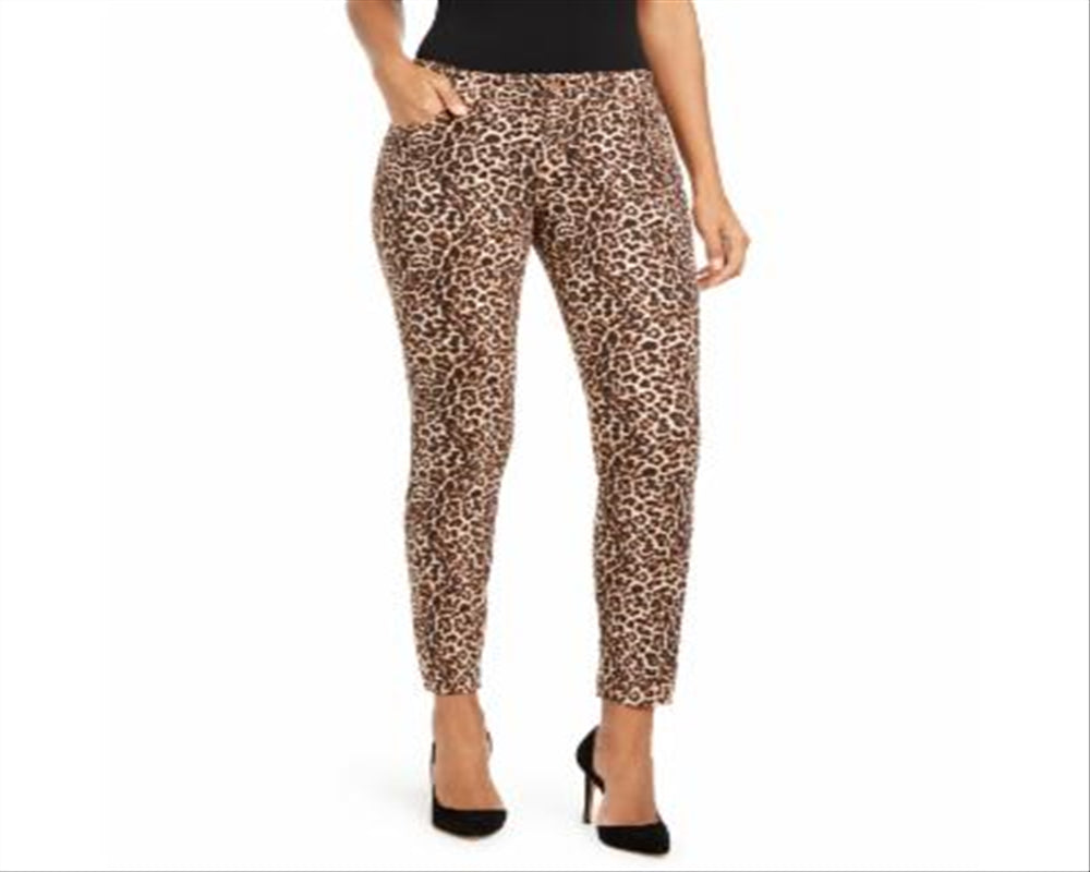Calça jeans skinny feminina INC International Concepts com estampa de leopardo e ajuste curvilíneo, marrom, tamanho 18