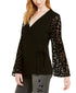 Decote em V | Amarração lateral na cintura | Mangas largas de veludo queimado com estampa de oncinha | Exterior: rayon/nylon; mangas: poliéster | Lavável à máquina | Importado