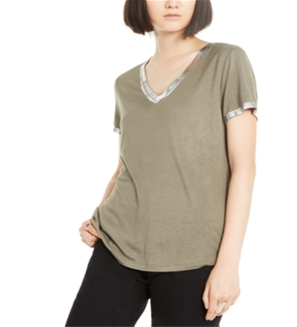 Camiseta feminina com acabamento metálico da INC International Concepts, verde, tamanho X-S