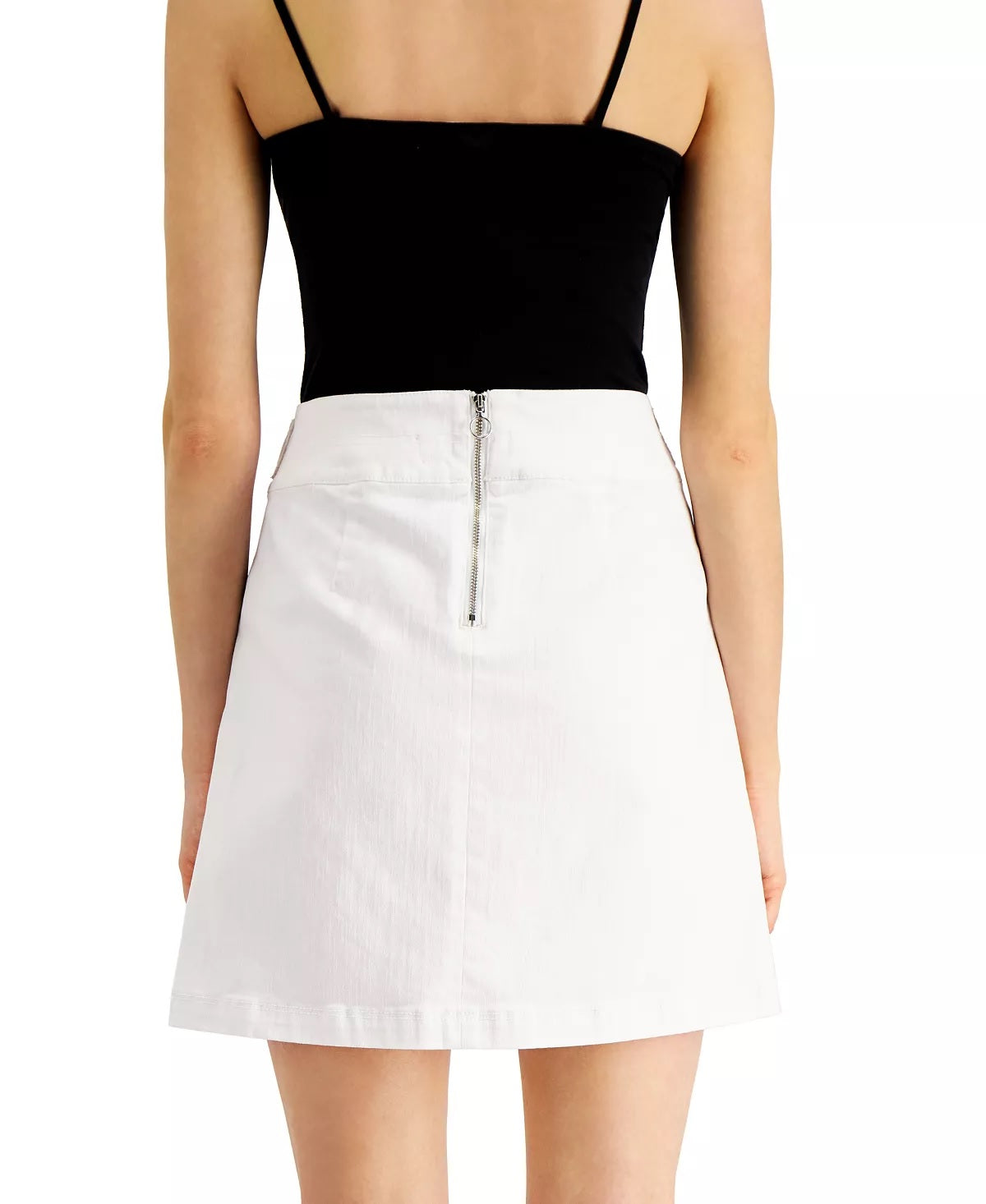 Comprimento mini; aprox. 18 | Fecho de zíper nas costas | Botões nas costuras laterais | Sem forro