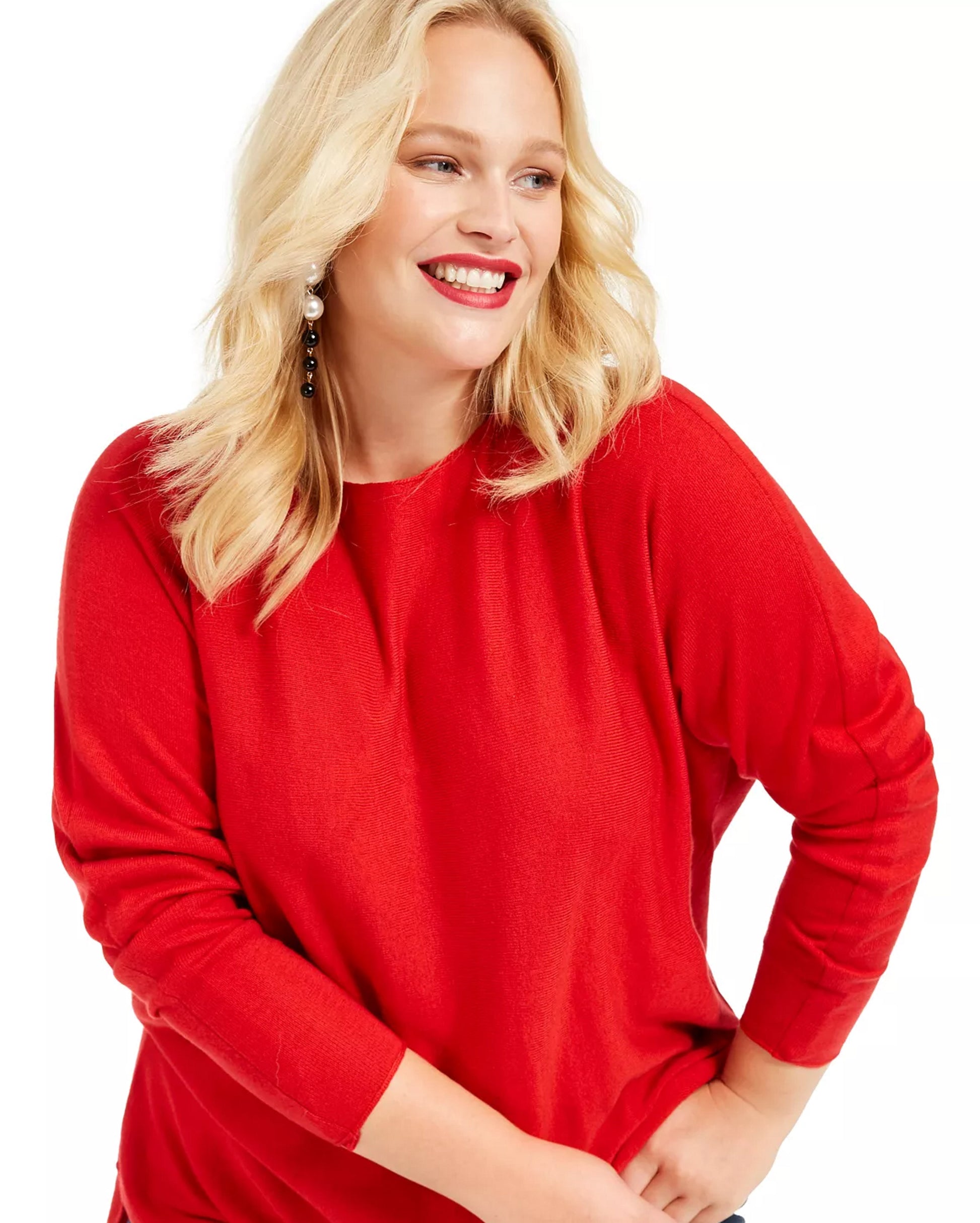 Blusa feminina plus size de lã alta e baixa da INC International Concepts, vermelha, tamanho 2X