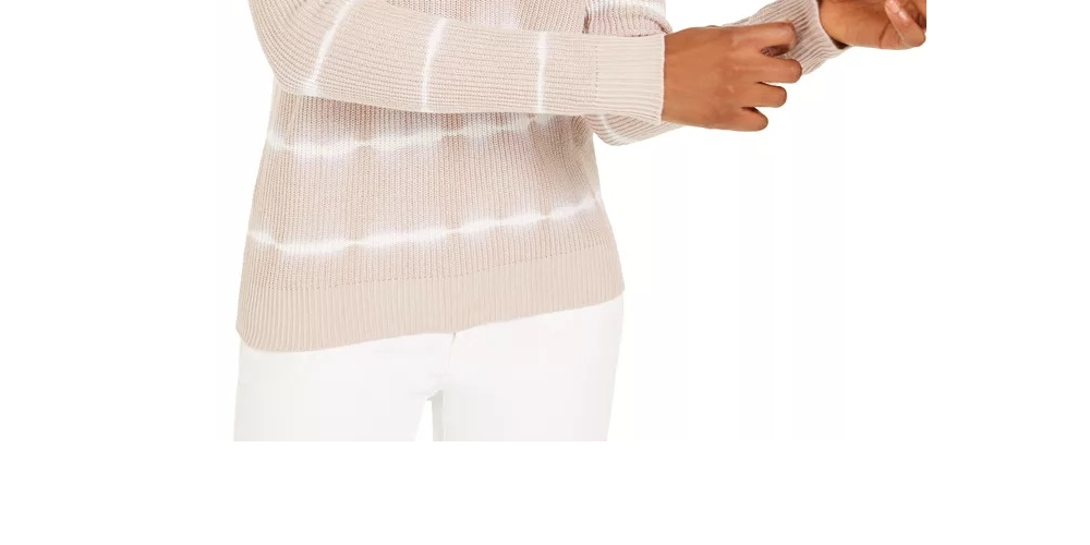 Suéter feminino de gola redonda com nervuras e tie-dye da INC International Concepts, bege, tamanho médio