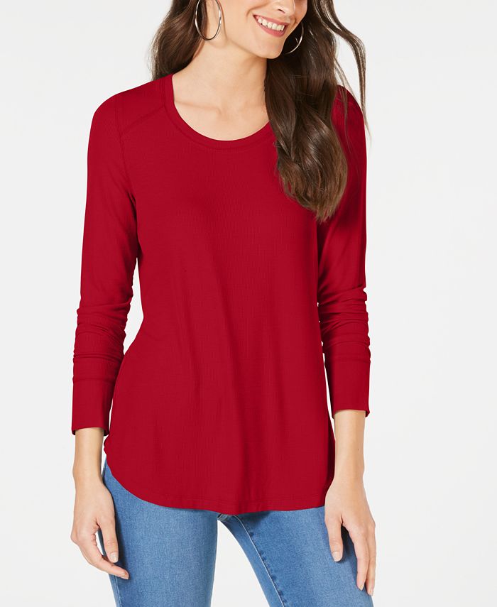 Um item essencial atemporal | esta camiseta canelada da INC International Concepts tem mangas longas e bainha curvada. | Acabamento no quadril | Decote redondo | Canelado; bainha curvada |
