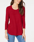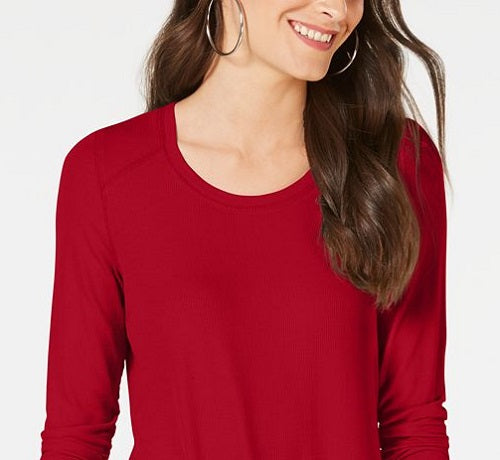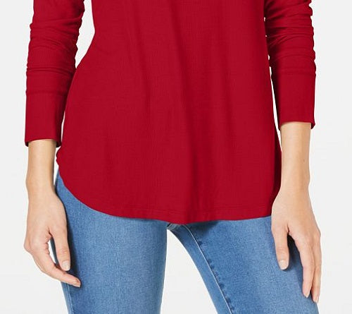 Camiseta feminina canelada de manga comprida INC International Concepts, vermelha, tamanho X-G