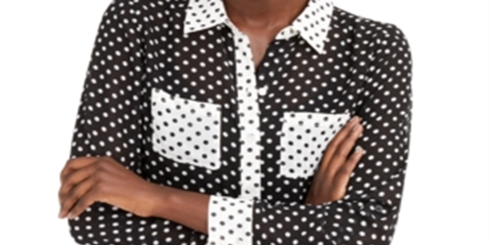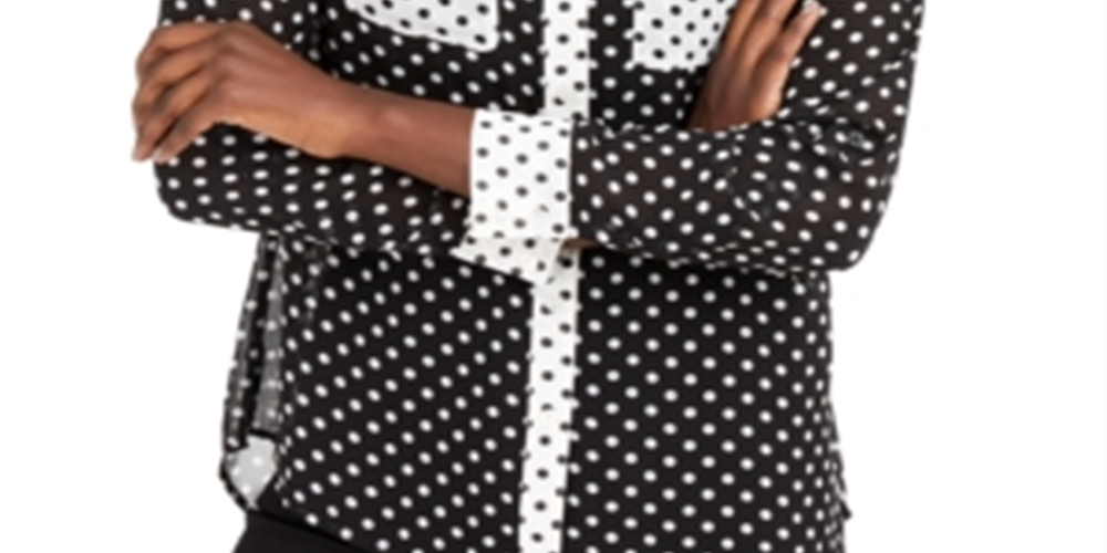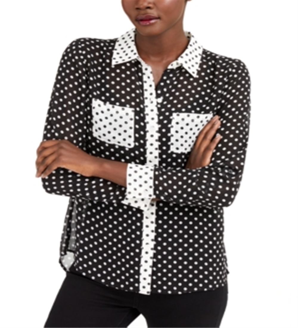 INC International Concepts Blusa feminina transparente de bolinhas, manga comprida, gola alta, botões, preta, tamanho X-S