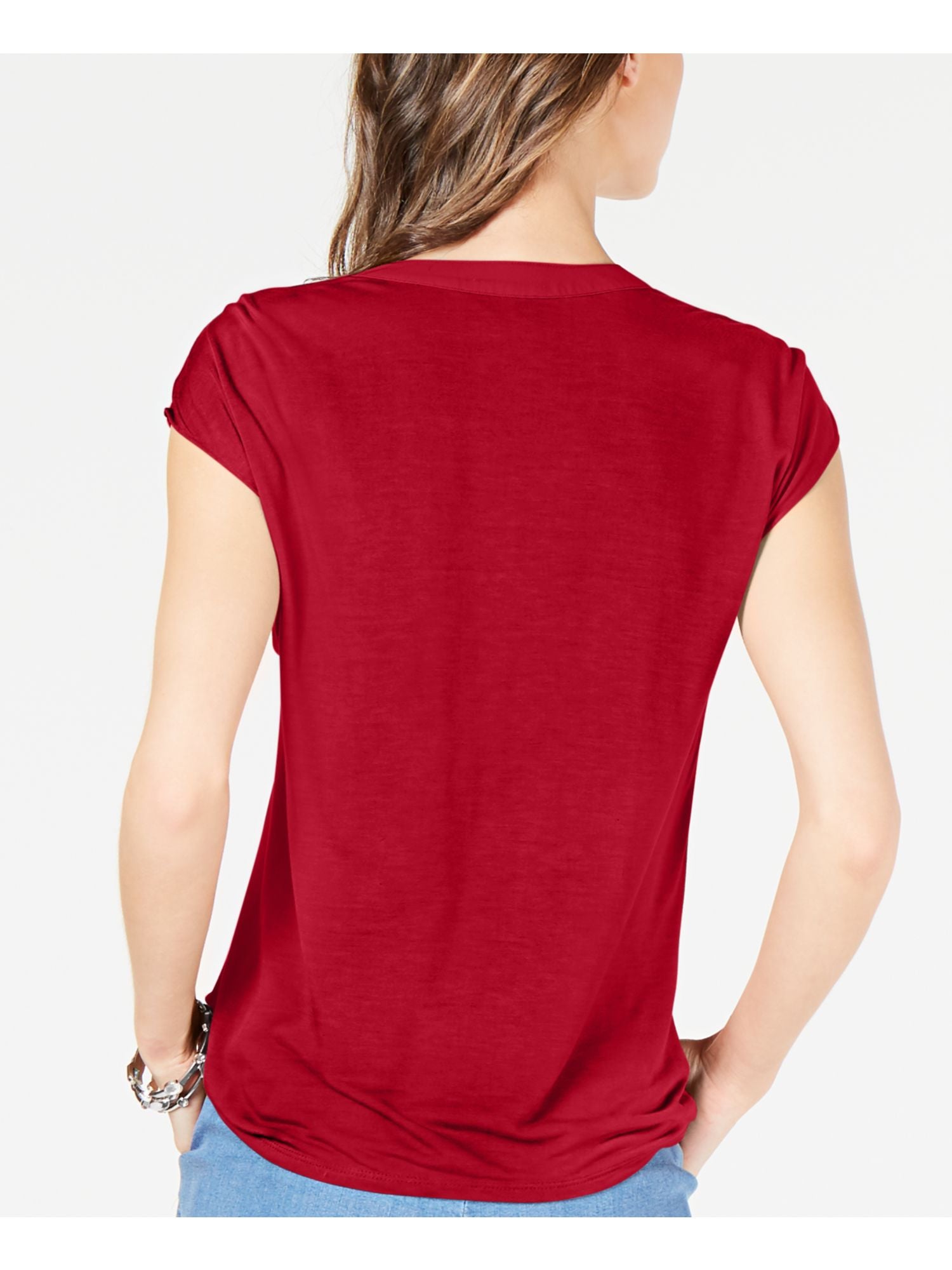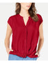 Blusa feminina de manga curta e decote em V INC International Concepts, vermelha, tamanho M