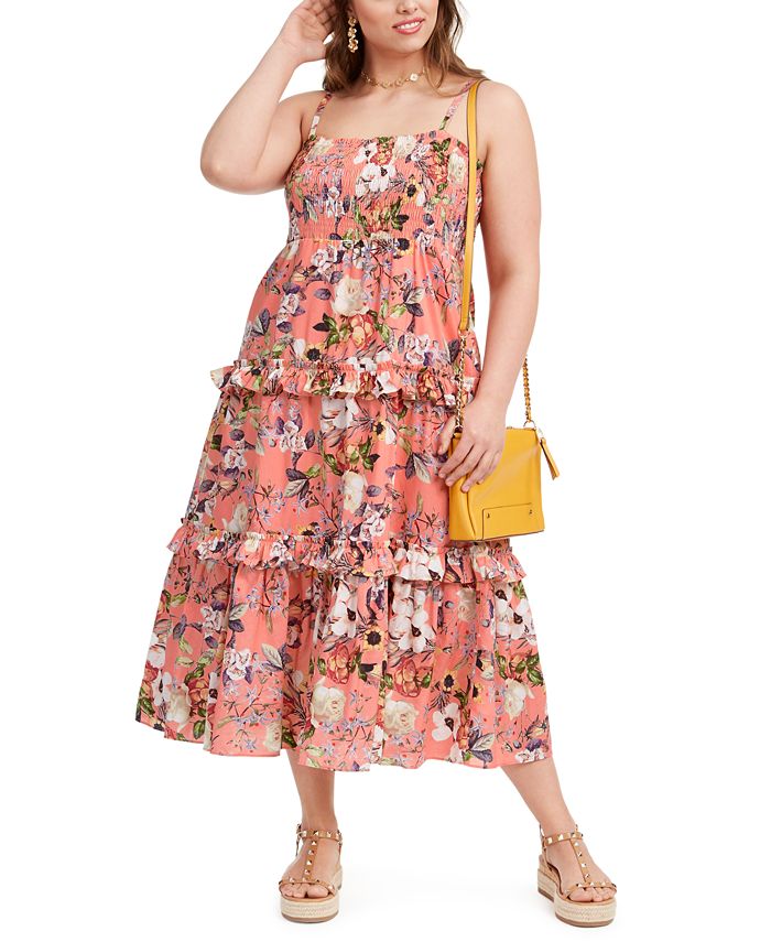 Vestido longo feminino sem mangas com babados florais da INC International Concepts, laranja, tamanho 3X