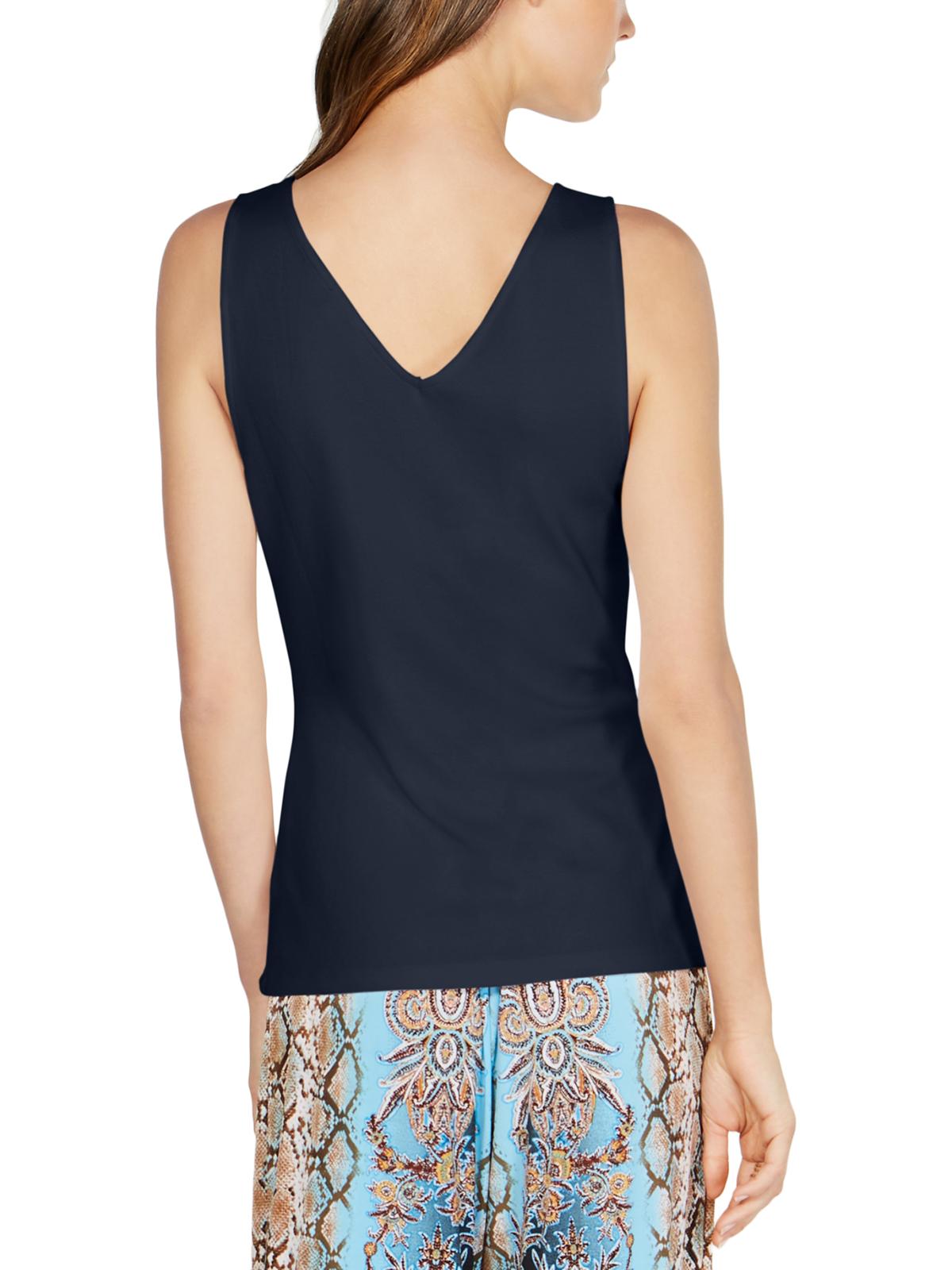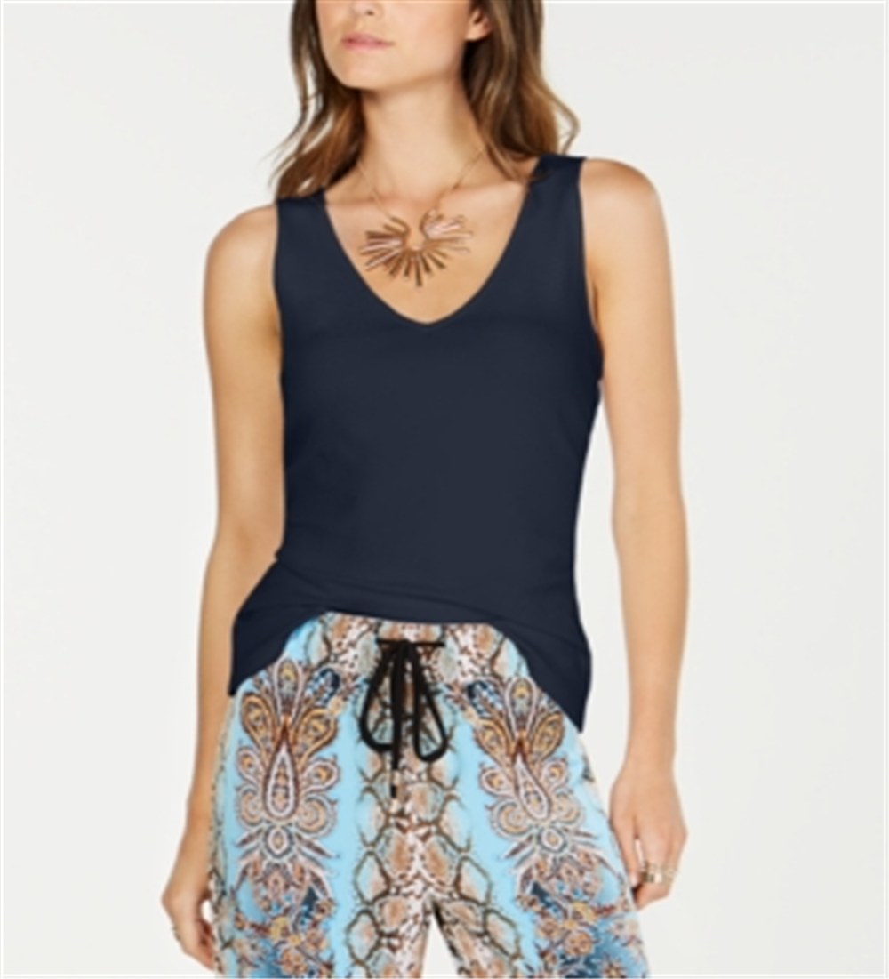 INC International Concepts Regata básica feminina sem mangas com decote em V, azul marinho, tamanho M