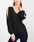 INC International Concepts Top feminino com mangas divididas e botões de strass, preto, tamanho PL