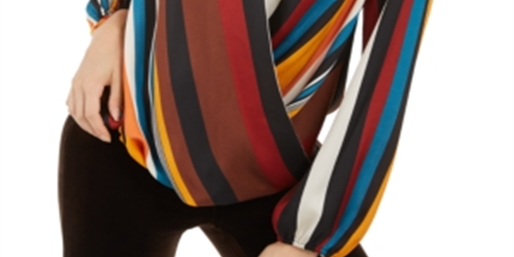 Blusa feminina listrada com decote sobrepeliz INC International Concepts, tamanho pequeno, laranja