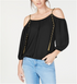 Blusa feminina com franjas e ombros descobertos, preta, tamanho pequeno P, da INC International Concepts