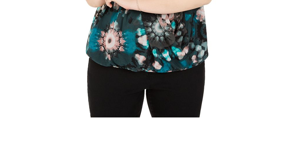 Tons vívidos de tie-dye acentuam o formato drapeado da sobrepeliz desta regata de malha plus size com detalhes em O-ring da INC International Concepts®. | Caimento relaxado | Decote em V | Estilo sobrepeliz; bainha franzida | Alças largas com acabamento em O-ring na frente; detalhes recortados nas costas | | Exterior; poliéster/elastano; forro; náilon