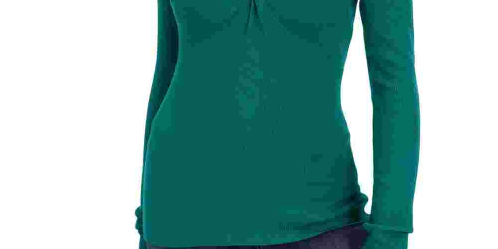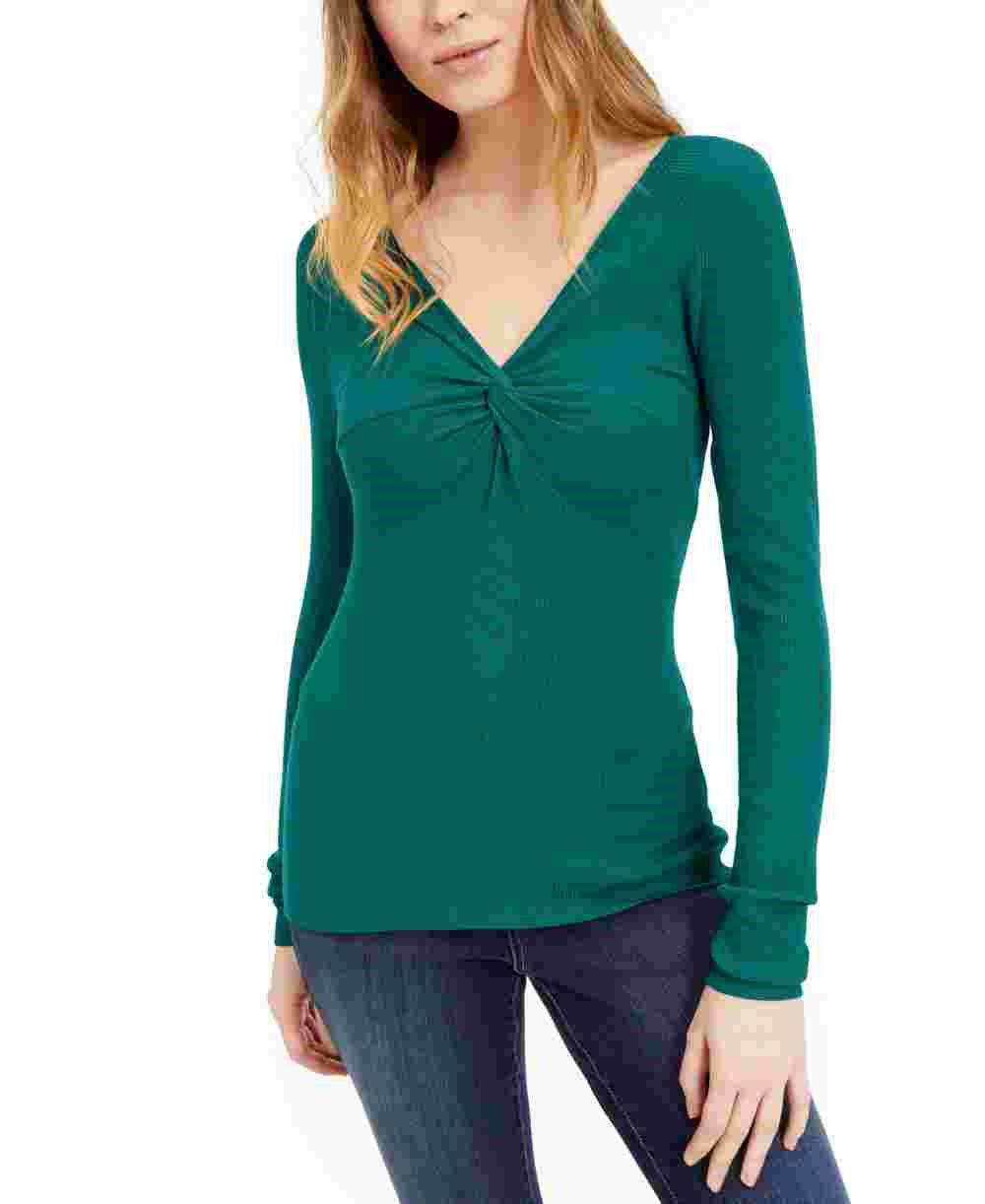 Suéter feminino INC International Concepts com decote em V e manga comprida com frente torcida, tamanho grande, verde