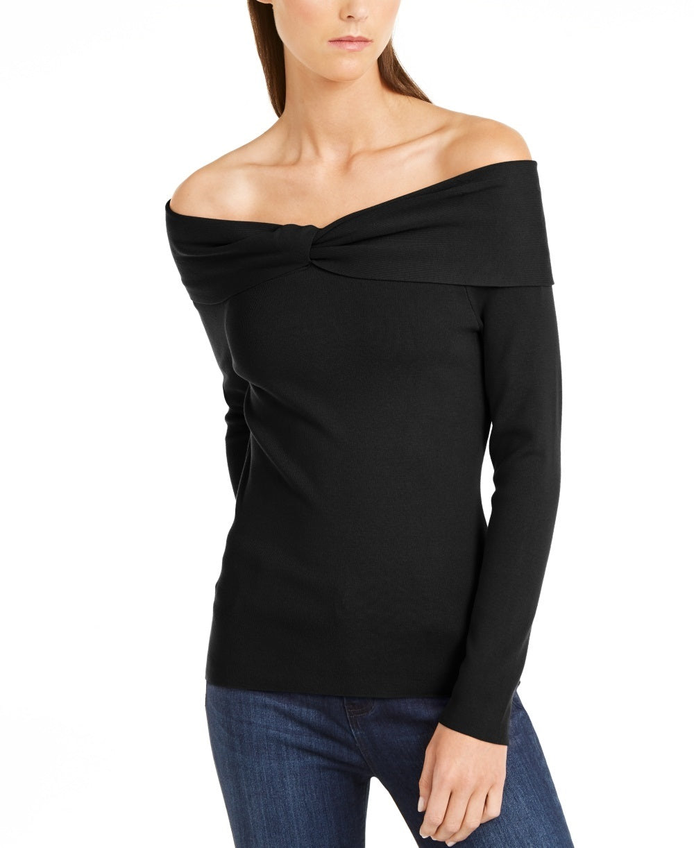Suéter feminino com decote ombro a ombro da INC International Concepts, preto, tamanho X-G