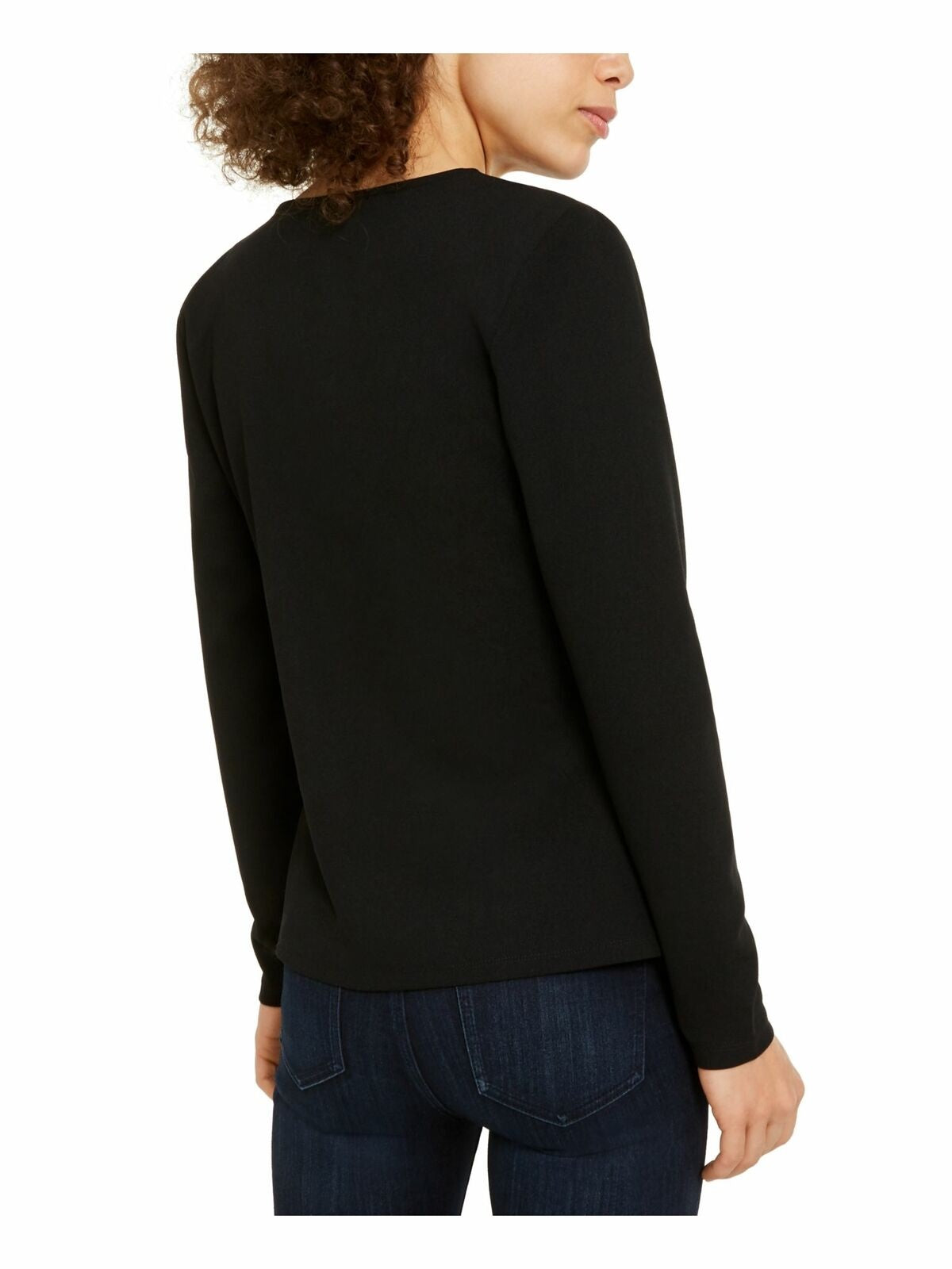 INC International Concepts Top feminino com decote em V e ferragens, preto, tamanho médio